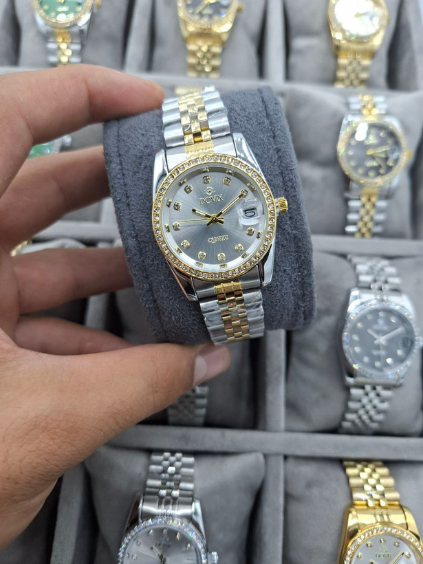 ساعت مچی زنانه داویکس طرح رولکس دو رنگ طلایی صفحه سفید