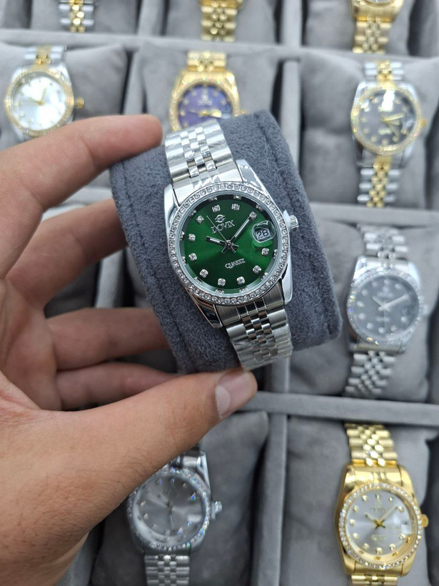 ساعت مچی زنانه داویکس طرح رولکس نقره‌ای صفحه سبز