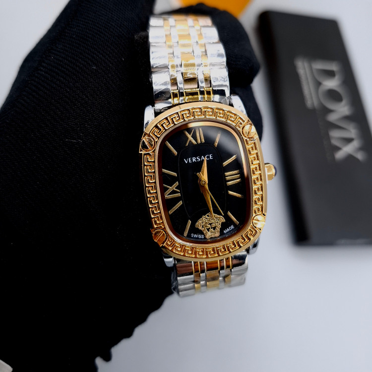 ساعت مچی زنانه ورساچه کوچر versacecouture نقرهای طلایی صفحه مشکی