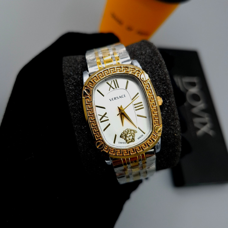 ترکیب رنگی جذاب این ساعت این مزیت را به شما داده است تا با خرید ساعت زنانه ورساچه مدل کوچر سیلور طلایی صفحه سفید بتوانید این مدل جذاب را با هر مدل لباسی که دوست دارید ست بکنید. برای مثال شما میتوانید این ساعت زیبا را با پیراهن مجلسی سفید یا طلایی، ست کت و دامن طلایی یا سفید، مانتو عبایی سفید با شلوار کتان مشکی و… ست بکنید.