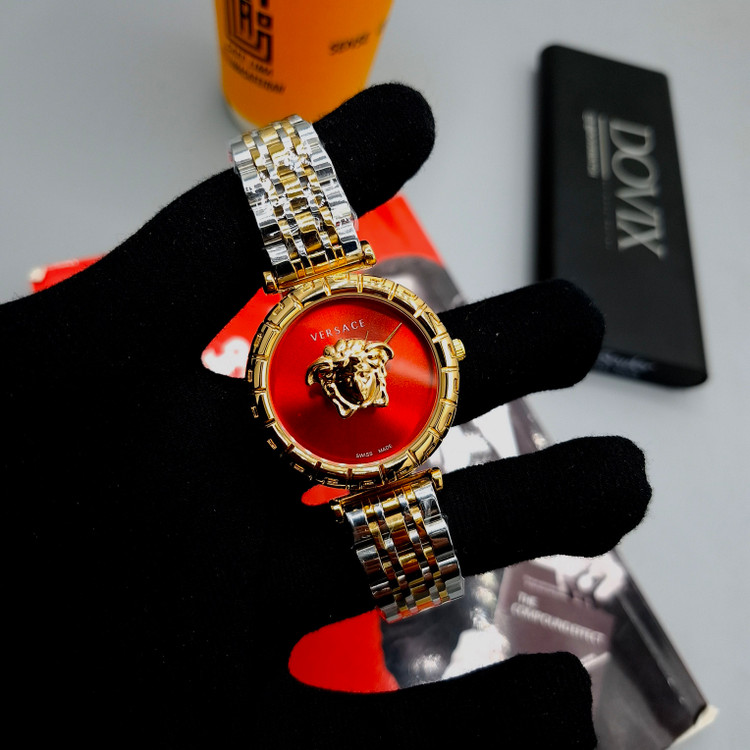 ساعت مچی زنانه ورساچه مدوسا نقرهای طلایی صفحه قرمز