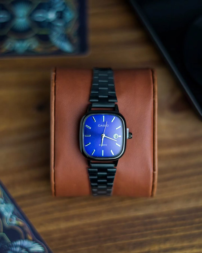 ساعت مچی کاسیو مربعی زنانه مشکی صفحه آبی