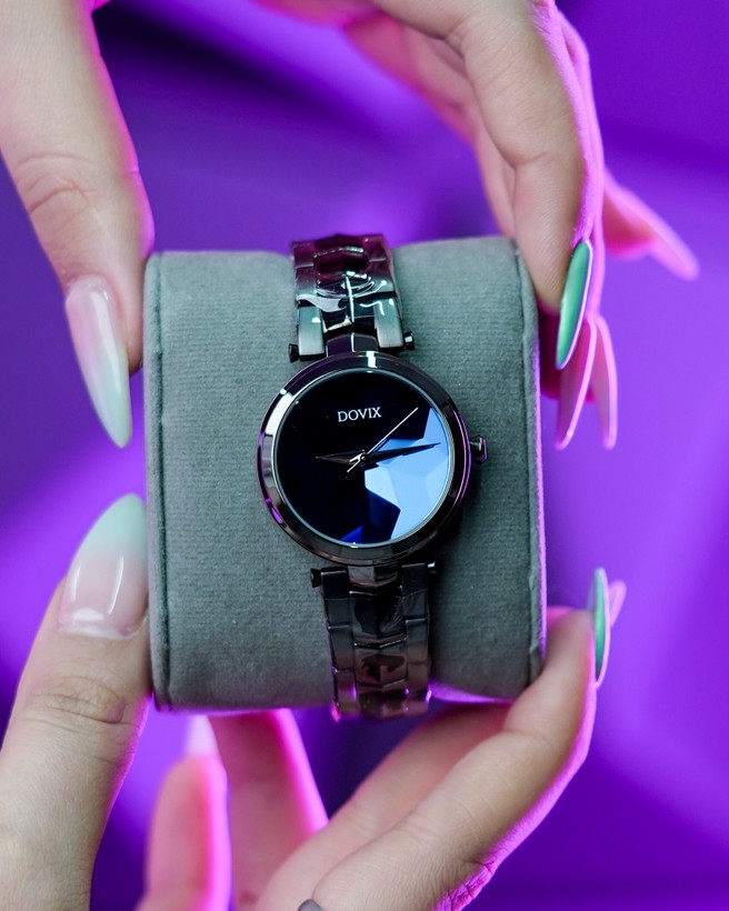 ساعت مچی زنانه داویکس شیشه منشوری مشکی صفحه سرمه‌ای رفرانس 1003