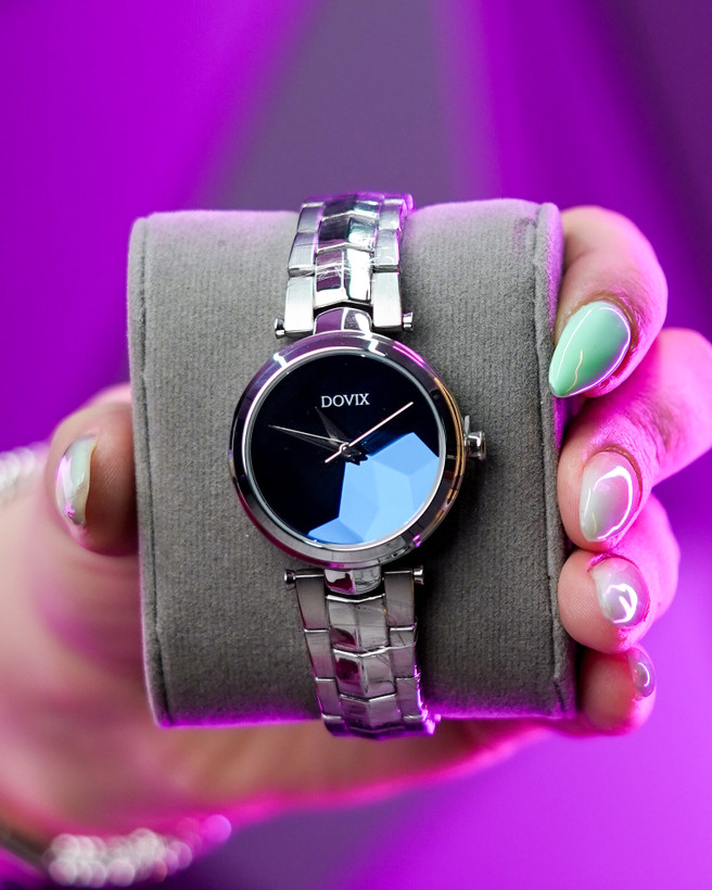 ساعت مچی زنانه داویکس شیشه منشوری نقرهای صفحه آبی رفرانس 1003