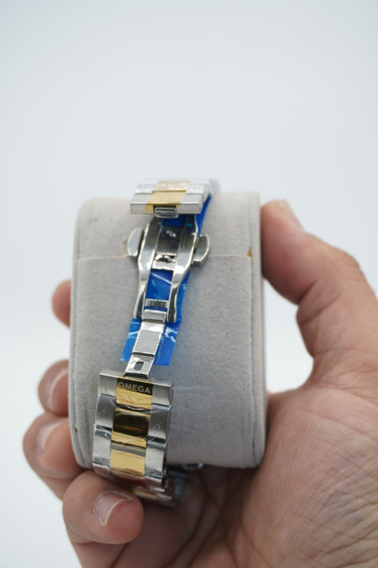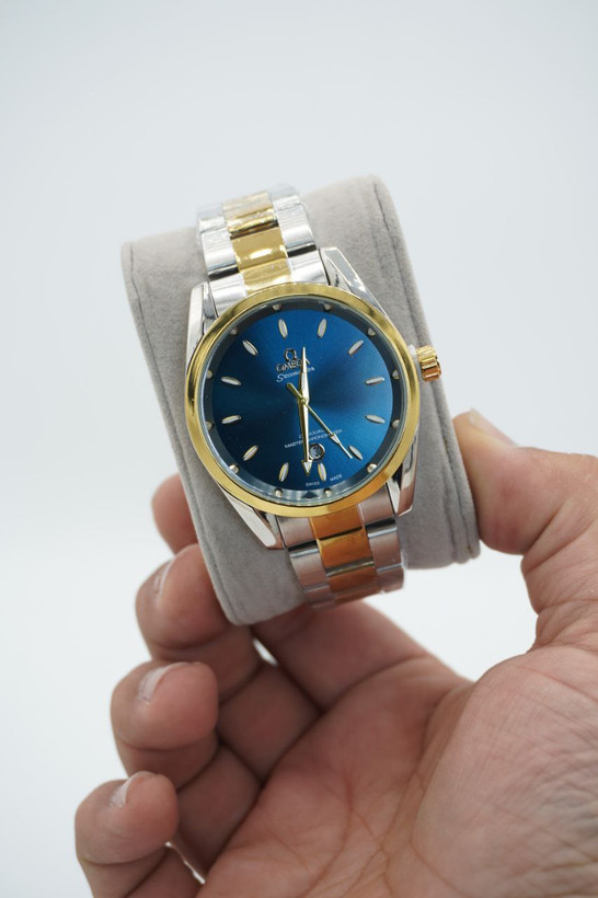 ساعت مچی مردانه امگا سیمیتر نقرهای طلایی صفحه آبی