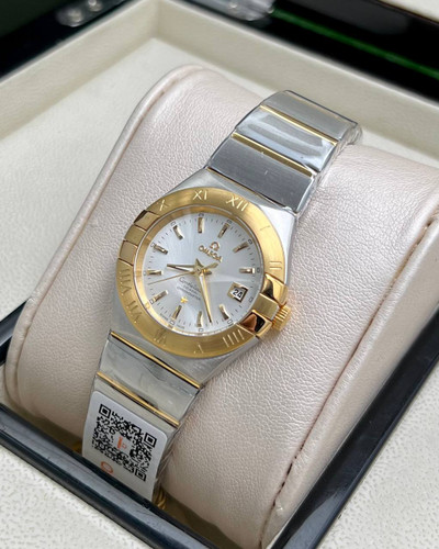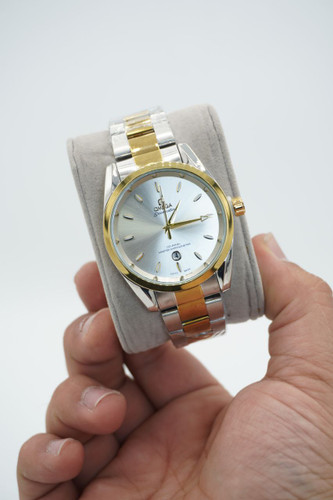 ساعت مچی مردانه امگا سیمستر نقرهای طلایی صفحه سفید