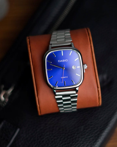 ساعت مچی کاسیو مربعی مردانه نقرهای صفحه آبی