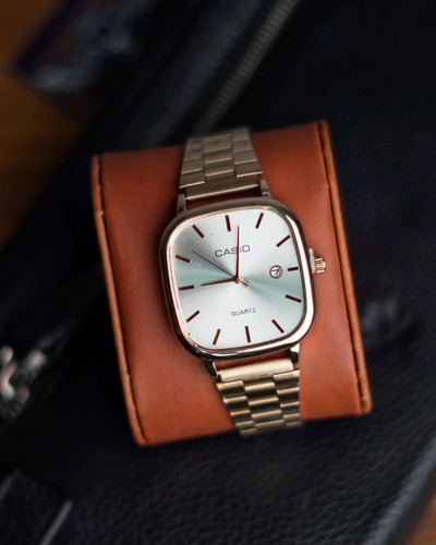 ساعت مچی کاسیو مربعی مردانه رزگلد صفحه سفید