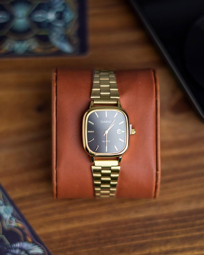 ساعت مچی کاسیو مربعی زنانه طلایی صفحه مشکی